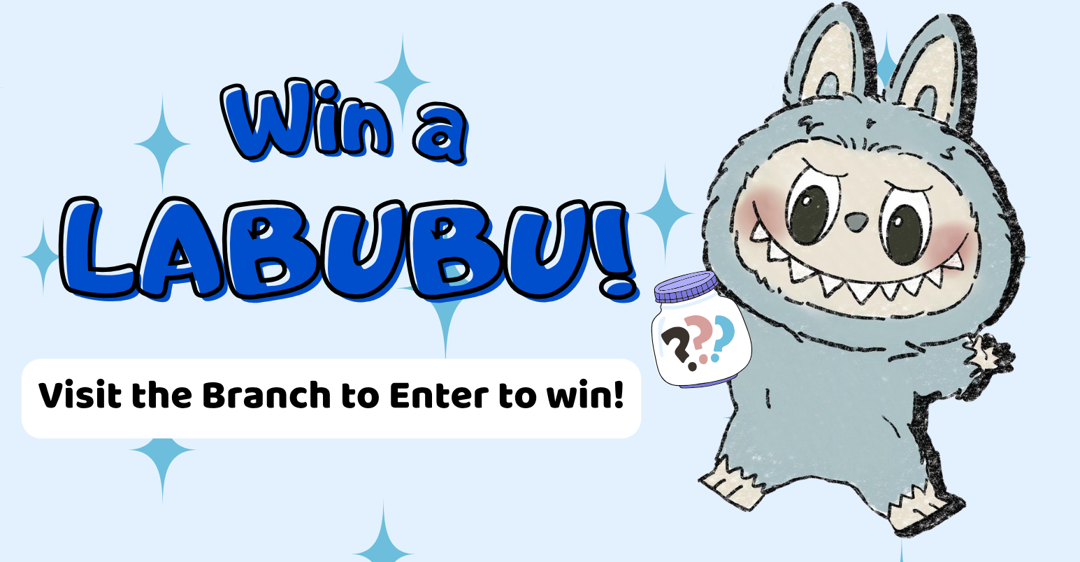 Stop by the branch to enter to win an Exciting Macaron Labubu! Look for the jar of Hershey Bars in our lobby and drop your guess in the box for a chance to win! Closest guess without going over will win the Labubu! We’ll be accepting guesses until Thursday, October 23rd at close of business, so be sure to stop by before then to enter!